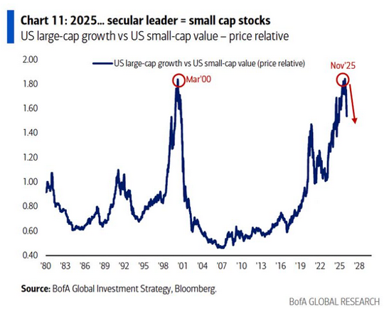 As this is primarily a US Large Cap (one might also say ETF) situation, Small vs Large is turning...