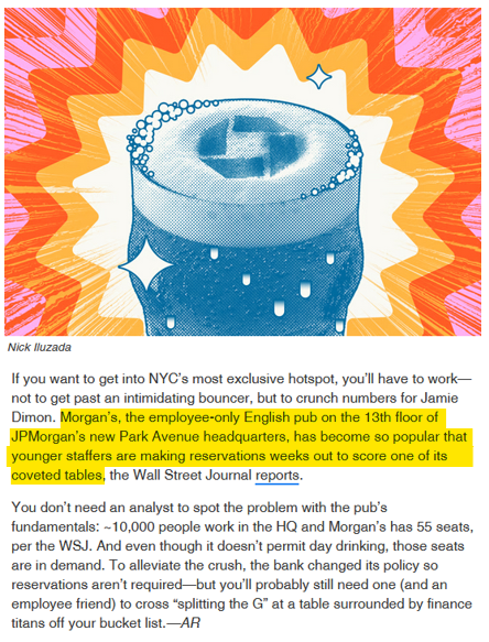 JPM has a pub in its HQ. Meanwhile, real pubs are dying left, right and center. 14k in the UK alone. Data Geek Lauren Leek is looking at the reasons and explains why this is a real loss for society (click). As my late grandad always said: Put down the phone, go down the pub, speak to real people. Lots of problems would not exist if people would talk more in real life. Go down the pub this weekend ! What a legend Enjoy the Weekend!